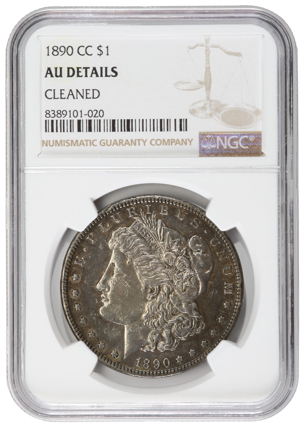 1890-CC $1 Morgan Silver Dollar NGC AU DETAILS - CLEANED, NGC graded Details of About Uncirculated 50. (Image) (Image2)