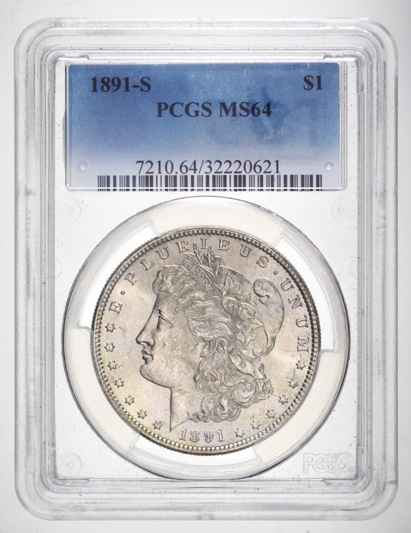 1891-S $1 Morgan Silver Dollar PCGs MS64, PCGS graded Mint State 64. (Image) (Image2)