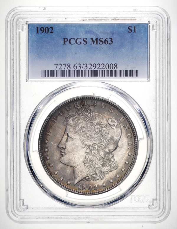 1902 $1 Morgan Silver Dollar PCGS MS63, PCGS graded Mint State 63. (Image) (Image2)