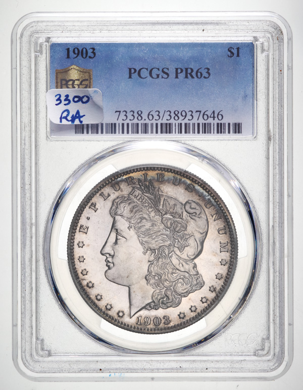 1903 $1 Morgan Silver Dollar PCGS PR63, PCGS graded Proof 63. (Image) (Image2)