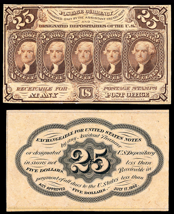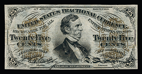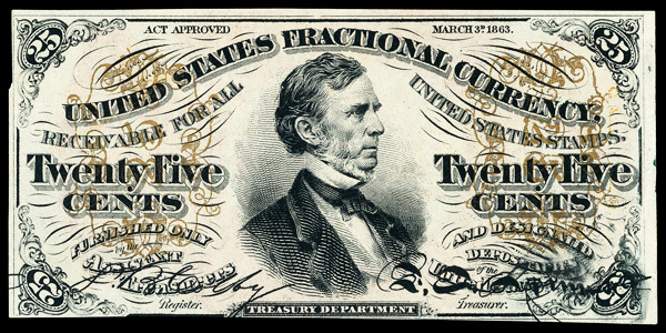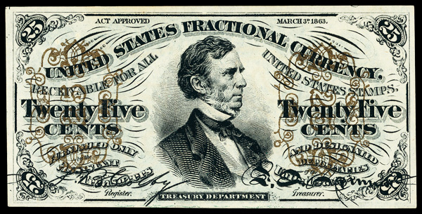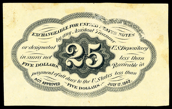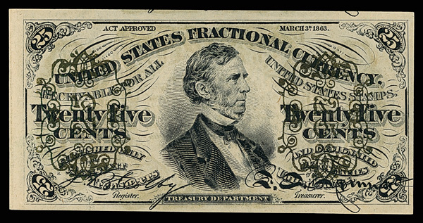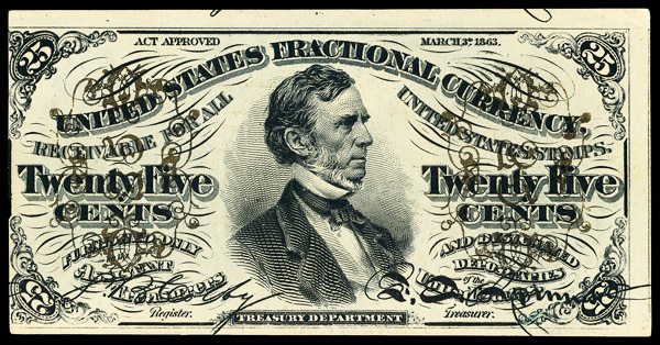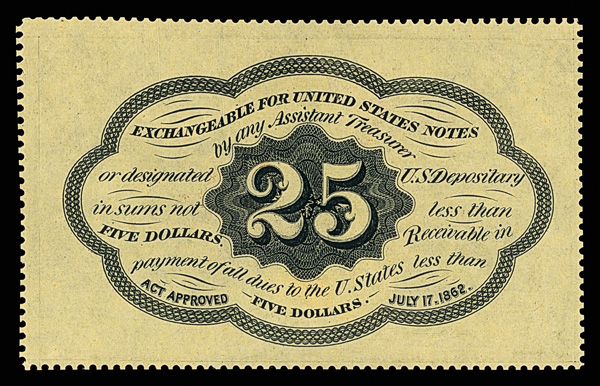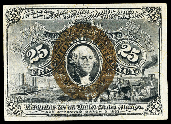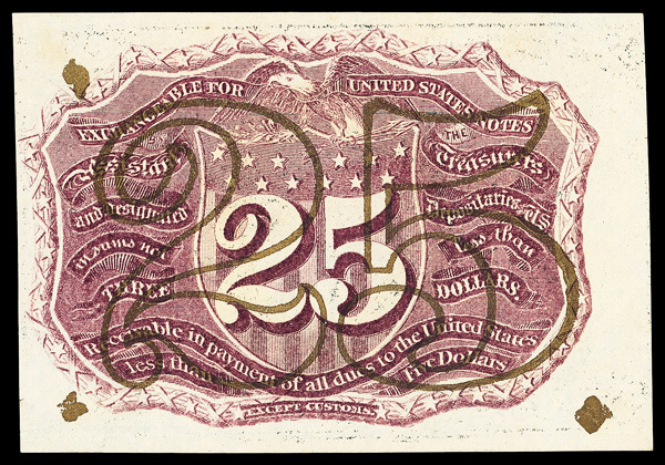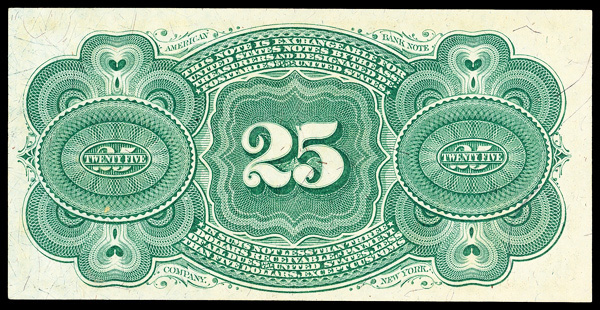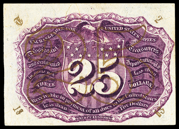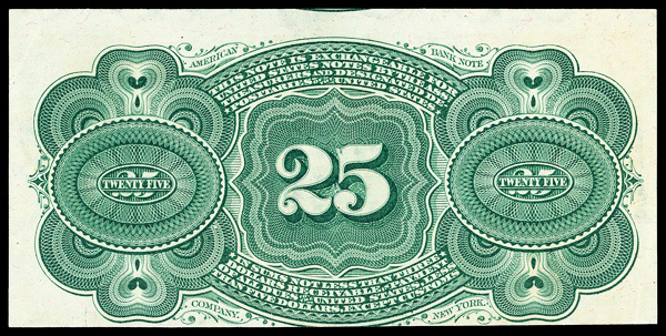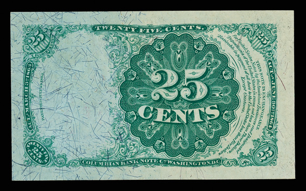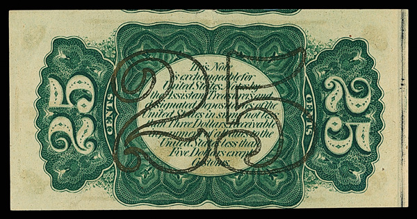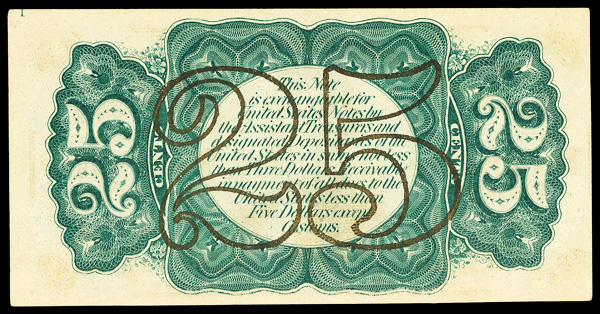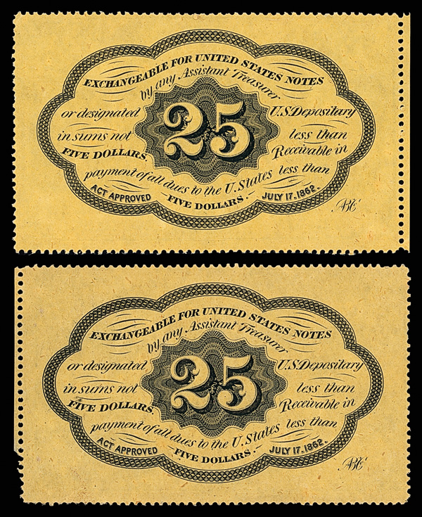 Fr. 1282 25¢ First Issue Straight Edge without Monogram (Fr-1282), Rothert-12. Straight edges, without ABNC monogram.