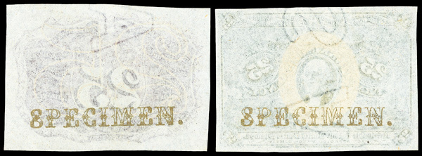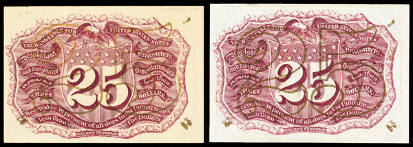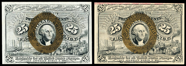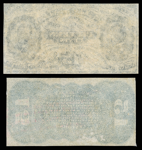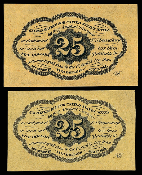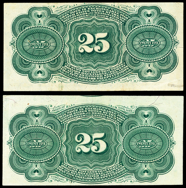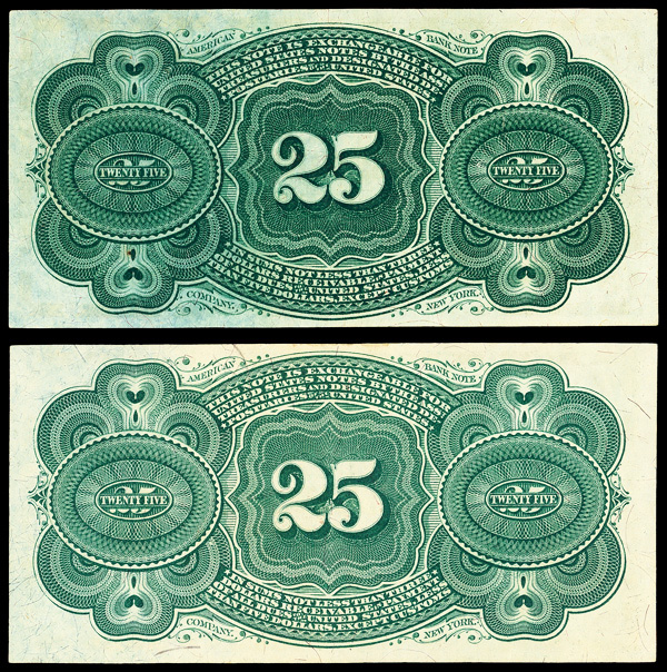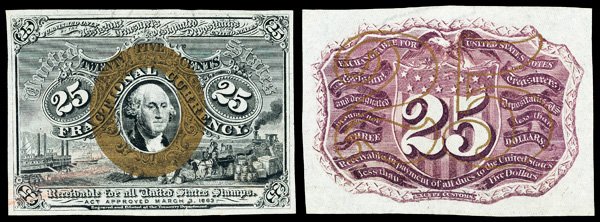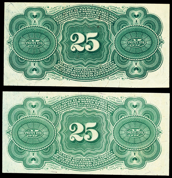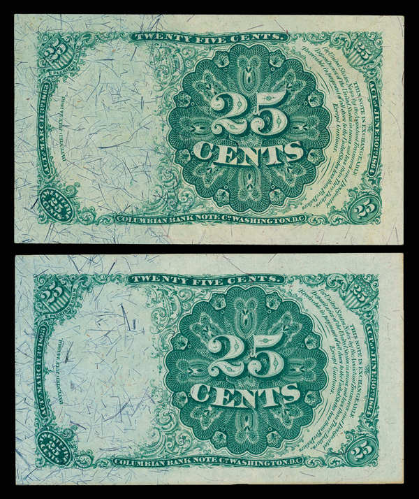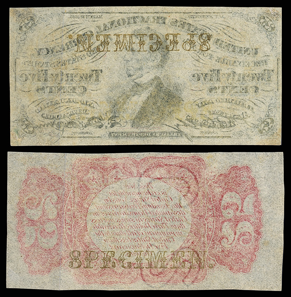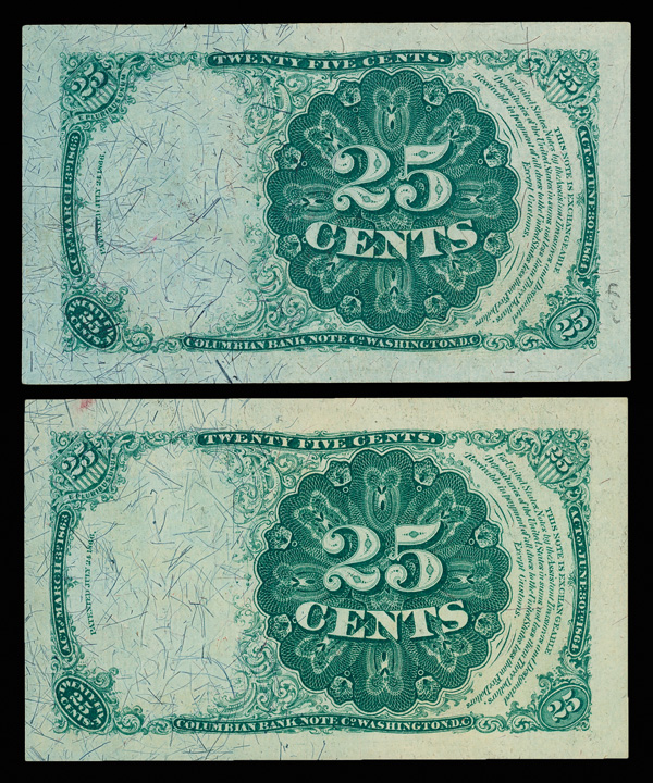 Fr. 1282 25¢ First Issue Uniface Obverse and Reverse Specimen Pair (Fr-1282), Uniface specimen, straight edges, without