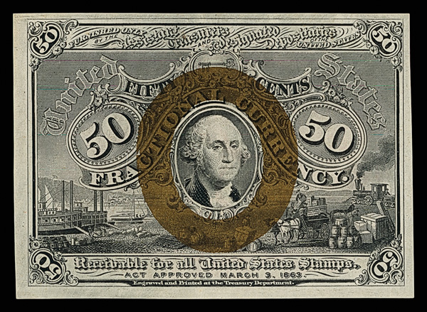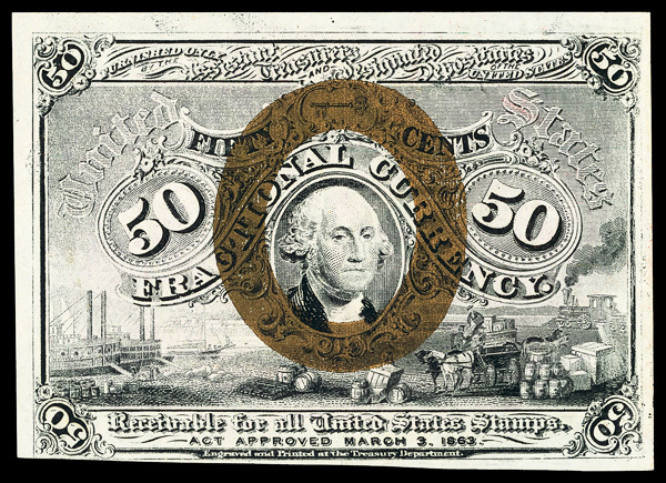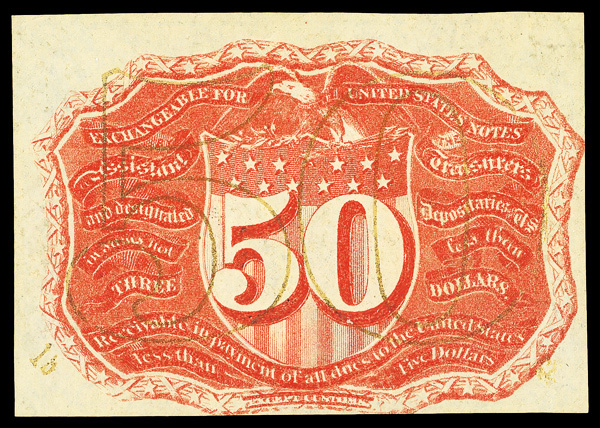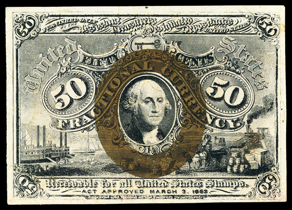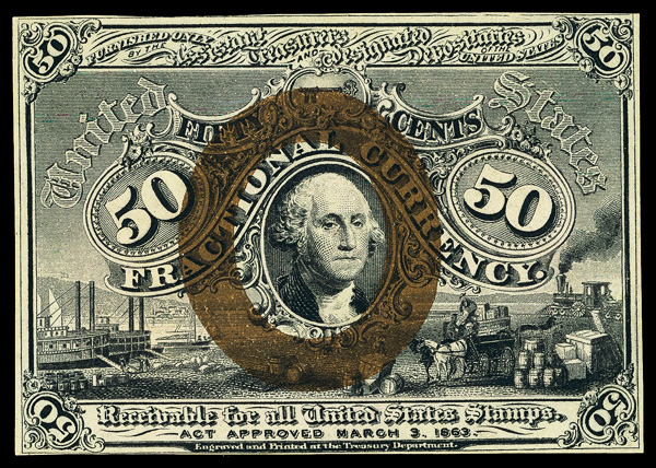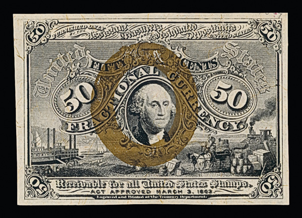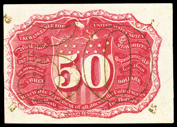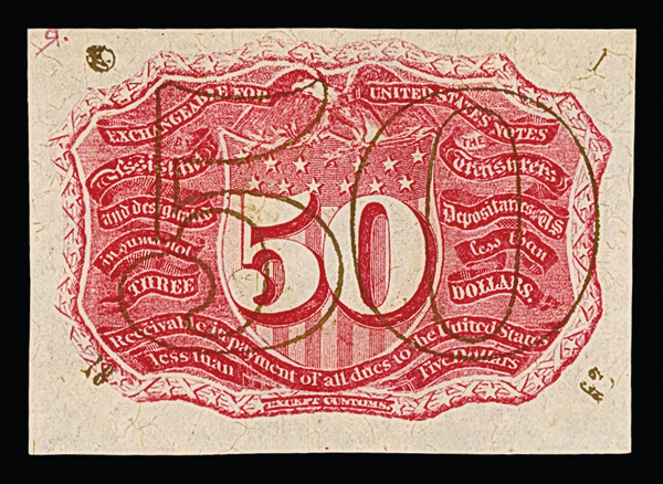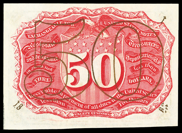 Fr. 1317 50¢ Second Issue (Fr-1317), Rothert-39, Washington at center flanked by 50's, With overprint "18-63"and "A",