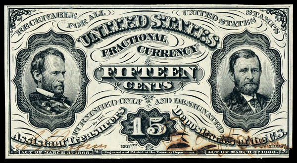 Fr. 1276 15¢ Third Issue Narrow Margin Specimen with Autographed Signatures (Fr-1276), Rothert-S-229. Obverse Uniface