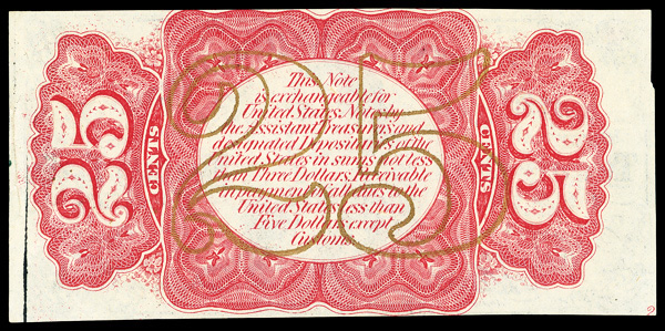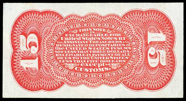 Fr. 1274 15¢ Third Issue Uniface Red Reverse Specimen (Fr-1274), Rothert-S-232. Uniface specimen of red reverse, this