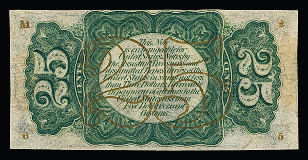 reverse, with overprint "M-2'-6-5" on corners of reverse, Choice XF to AU condition or better. (Image) (Image2)