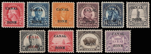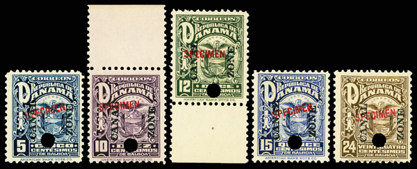 According to the footnote in the Scott Specialized catalog, "The 5¢-1b values were prepared for use but never issued due to abrogation of the Taft Agreement which required the Canal Zone to use overprinted Panama stamps. Six hundred of each denomination were not destroyed, as they were forwarded to the Director General of Posts of Panama, for transmission to the UPU, which then required about 400 sets. Only a small number of sets appear to have reached the philatelic market." The balance of the supply was destroyed in 1937.