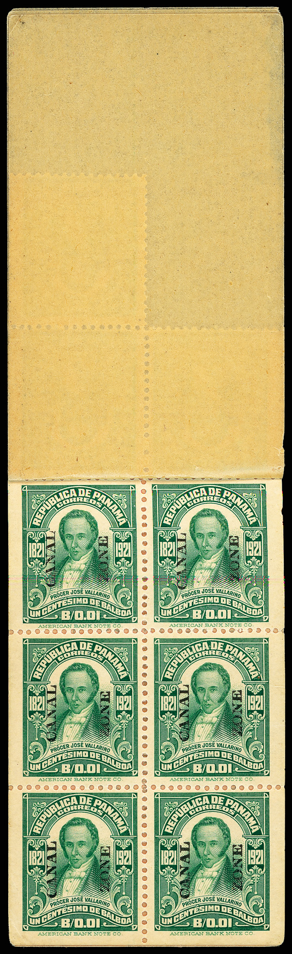 1794 BKog 60b image1921, 1c Vallarino, booklet pane of 6 (Scott 60b), tropicalized o.g. with adherence at bottom right, rich color, strong perfs, Very Fine and also includes booklet covers still bound together.