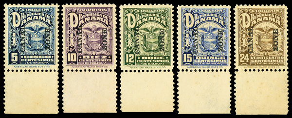 According to the footnote in the Scott Specialized catalog, "The 5c-1b values were prepared for use but never issued due to abrogation of the Taft Agreement which required the Canal Zone to use overprinted Panama stamps".