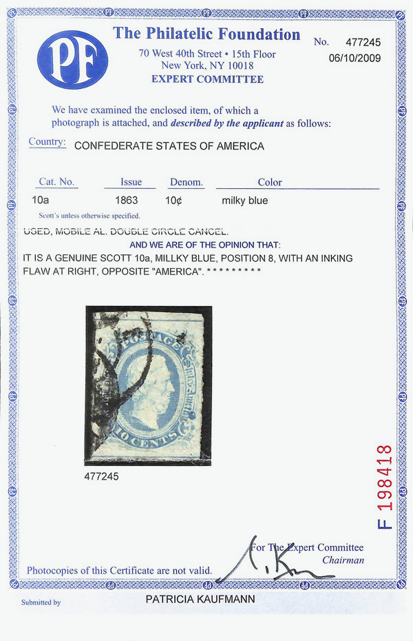 Get Market Data for [United States (Confederate States) 10a] Visual Pricing Guide Sample Census