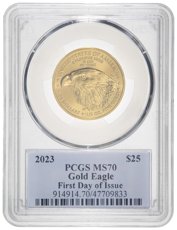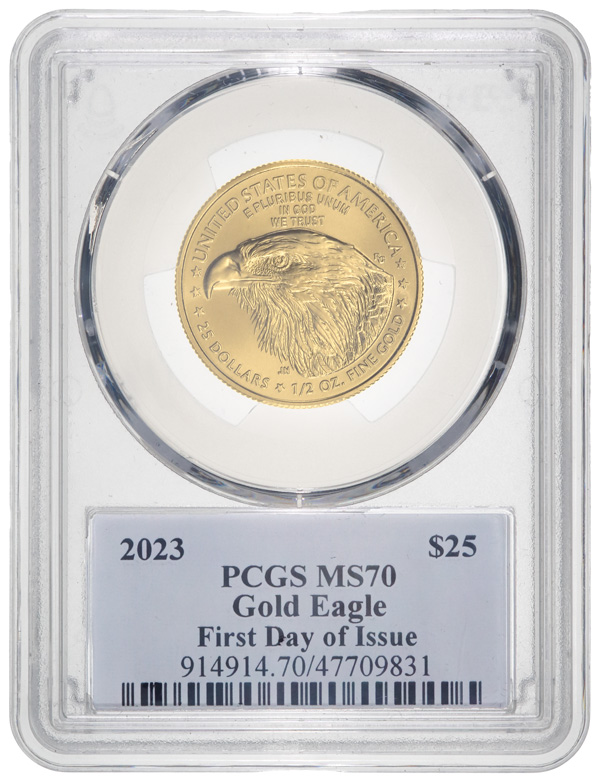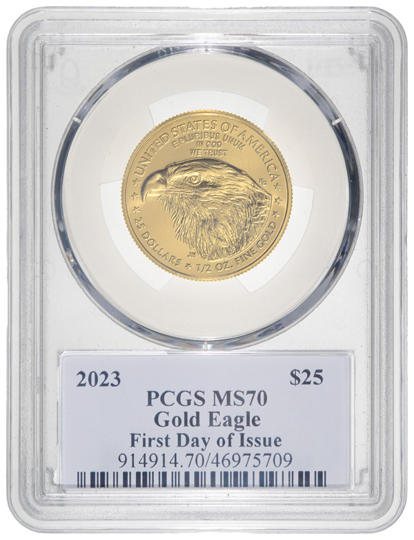 2023 $25 American Gold Eagle PCGS MS70 First Day of Issue, PCGS graded Mint State 70. (Image) (Image2)