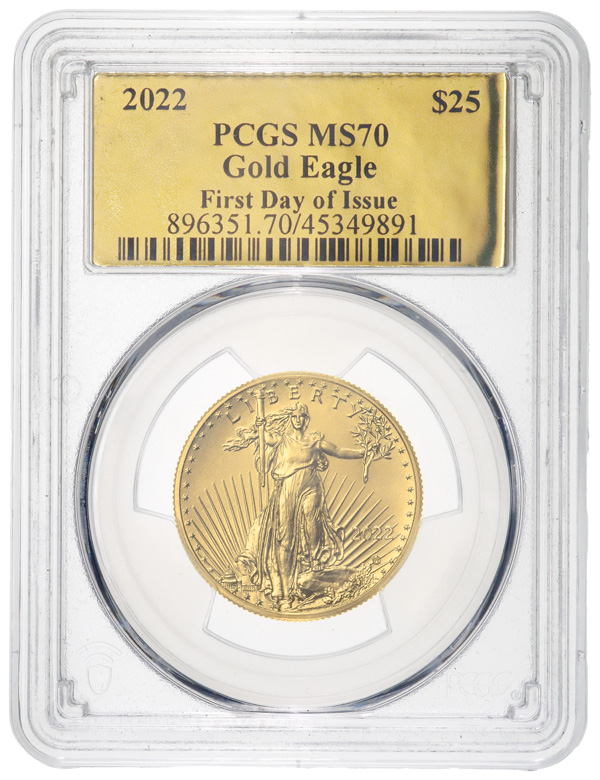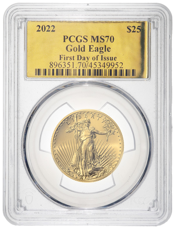 2022 $25 American Gold Eagle PCGS MS70 First Day of Issue, PCGS graded Mint State 70. (Image) (Image2)