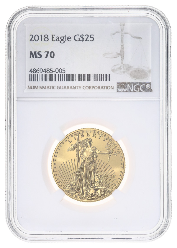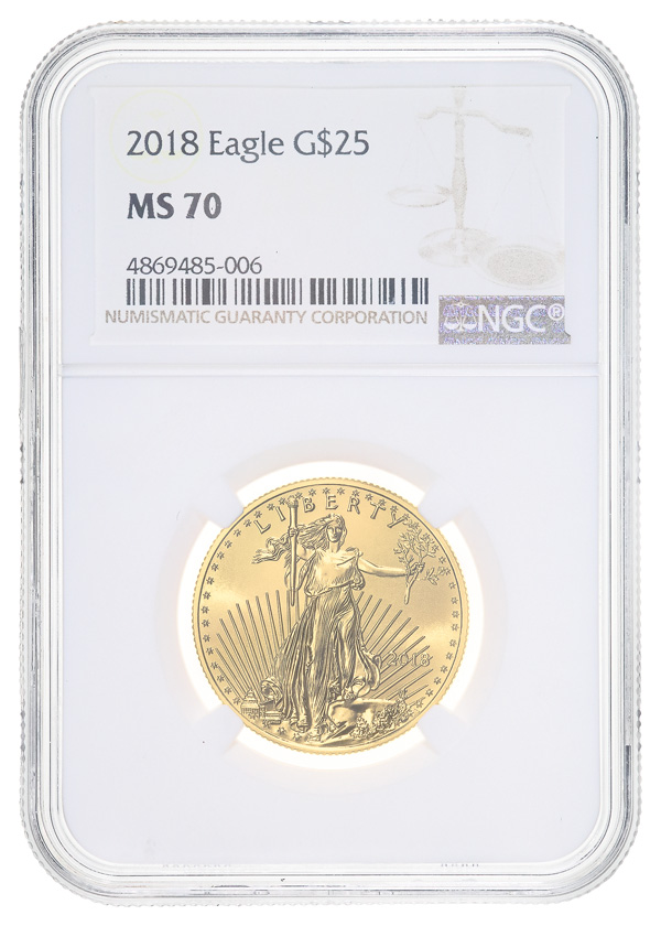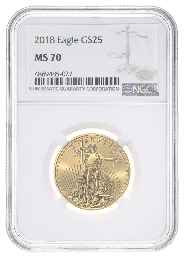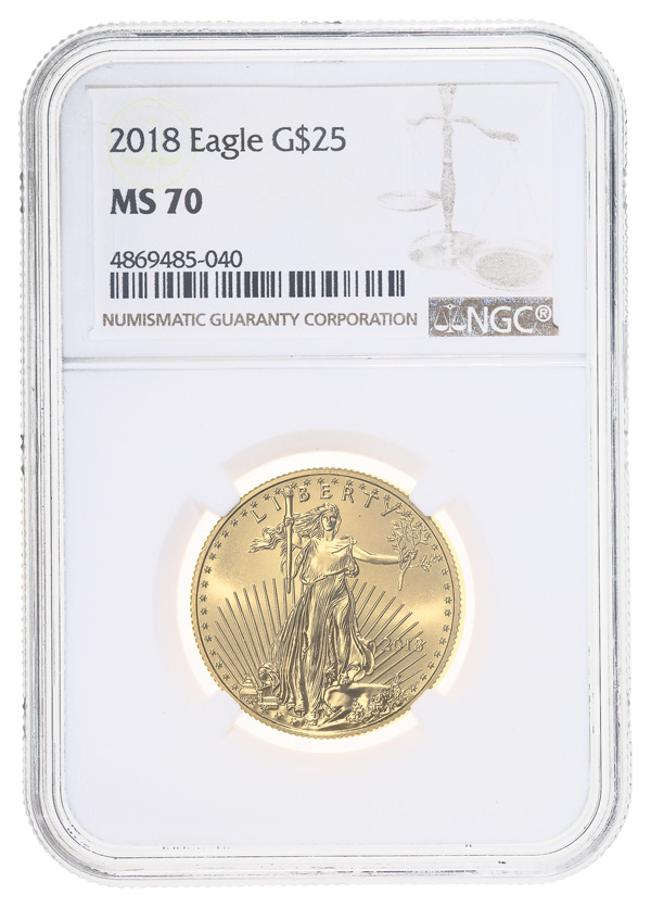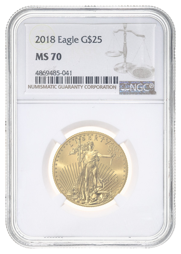 2018 $25 American Gold Eagle NGC MS70, NGC graded Mint State 70. (Image) (Image2)
