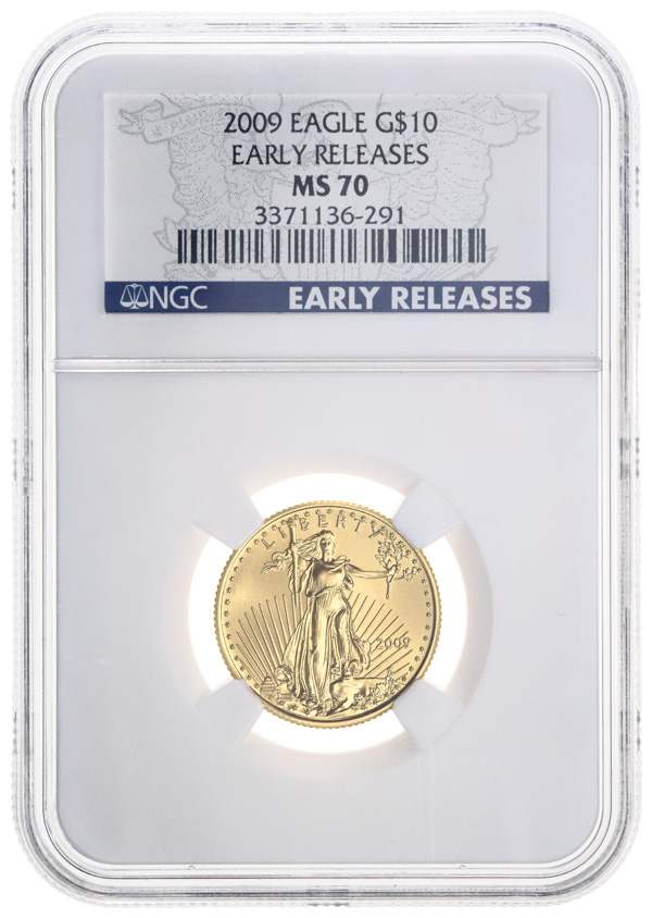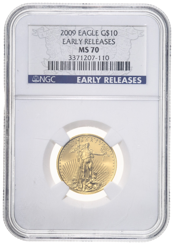 2009 $10 American Gold Eagle Early Releases NGC MS70, NGC graded Mint State 70. (Image) (Image2)