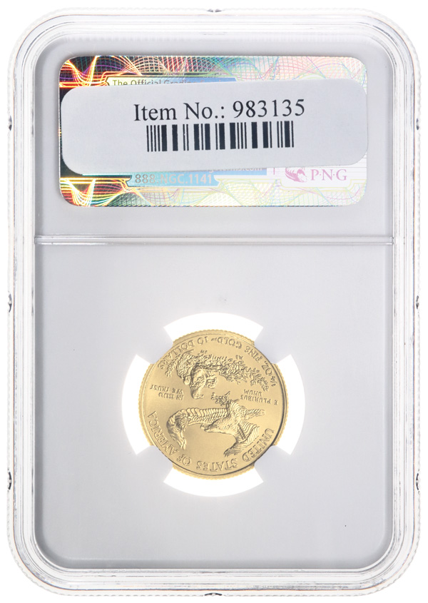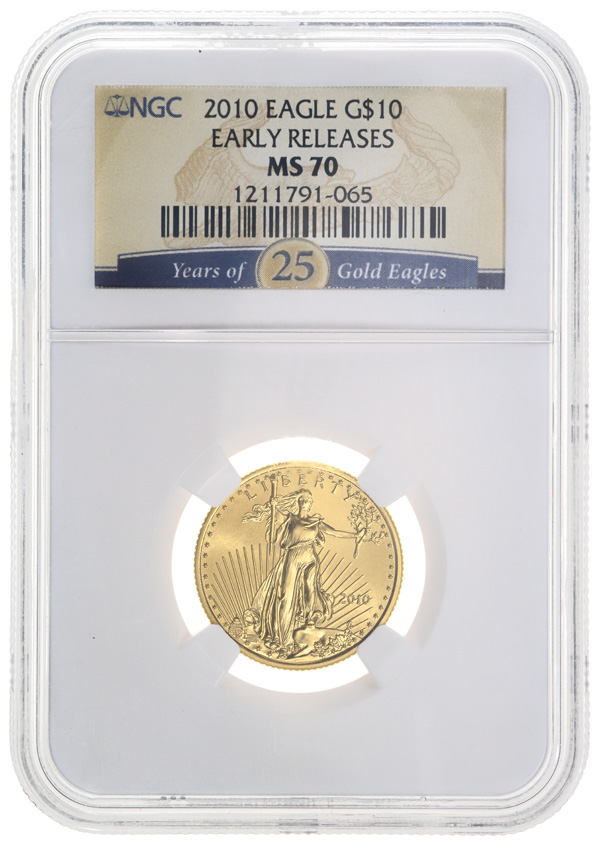 2010 $10 American Gold Eagle Early Releases NGC MS70, NGC graded Mint State 70. (Image) (Image2)