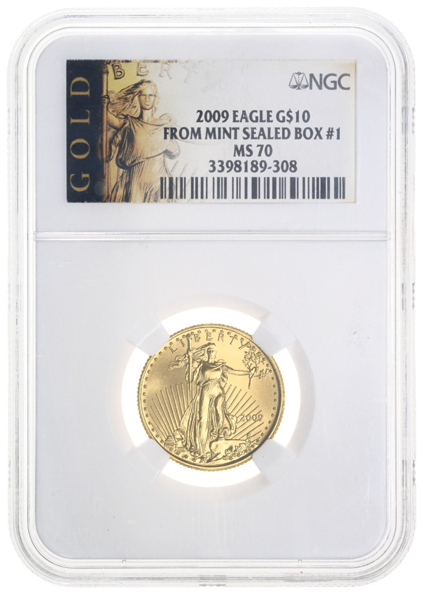 2009 $10 American Gold Eagle From Mint Sealed Box #1 NGC MS70, NGC graded Mint State 70. (Image) (Image2)