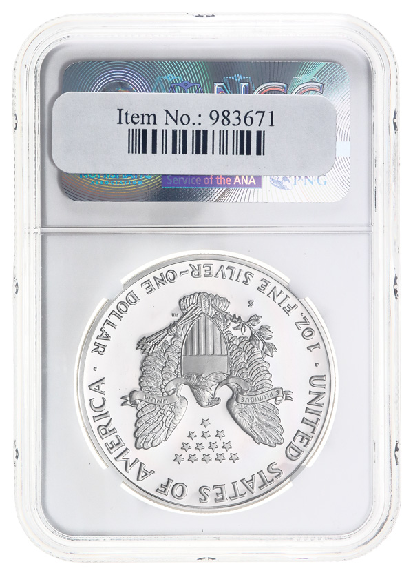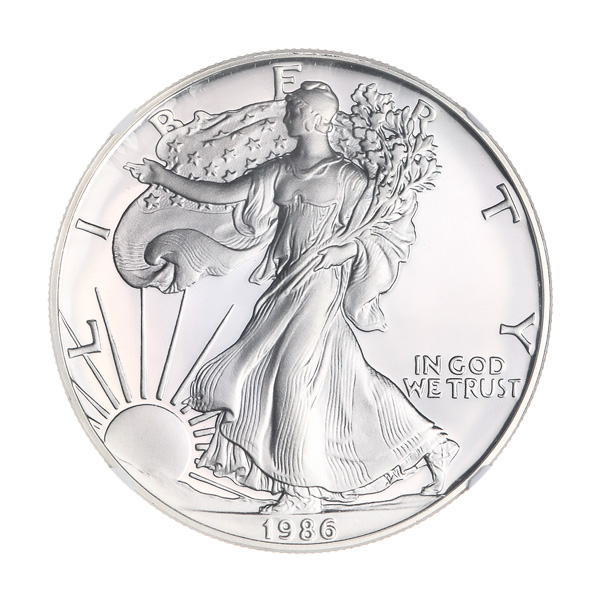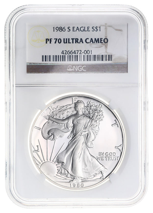1986-S $1 Silver Eagle NGC PF70 Ultra Cameo, NGC graded Proof 70 Ultra Cameo. (Image) (Image2)