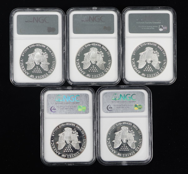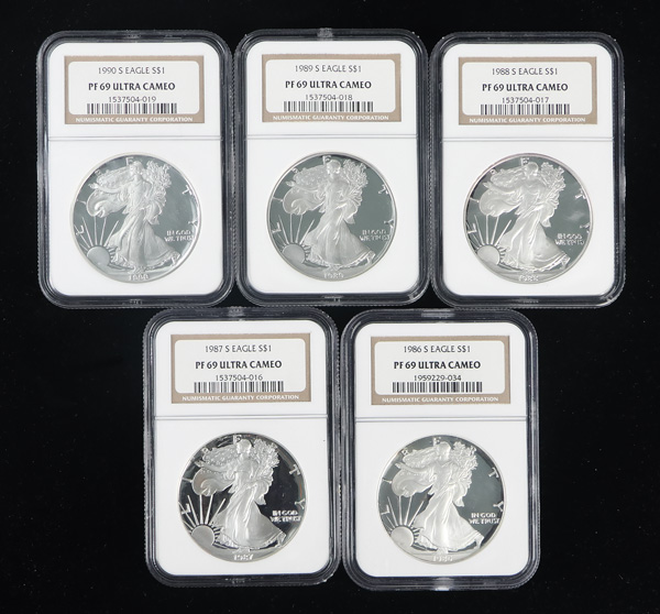 graded PF69 Ultra Cameo, 1988-S NGC graded PF69 Ultra Cameo, 1989-S NGC graded PF69 Ultra Cameo, 1990-S NGC graded PF69 Ultra Cameo (5), NGC graded Proof 69 Ultra Cameo. (Image) (Image2)