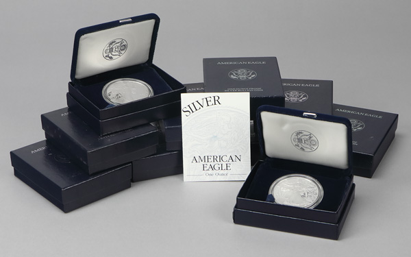Group of (10) $1 American Eagle Proof Silver Dollars ASE, 1997-1998, includes: (7) 1998-P & (3) 1997-P; all in OGP, some