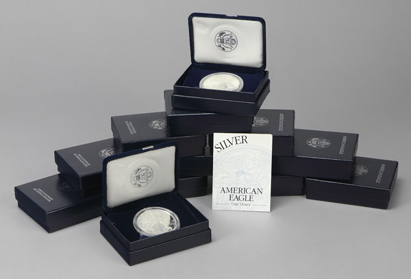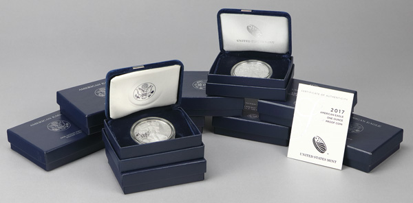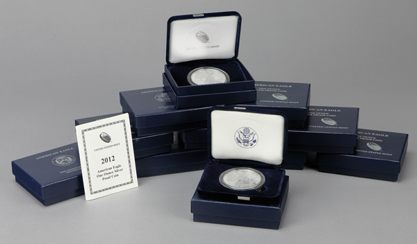 Group of (11) $1 American Eagle Silver Proof Dollars, 2012-2013, group includes: (5) 2012-W & (5) 2013-W; all in OGP (11).