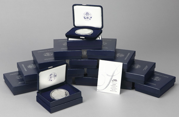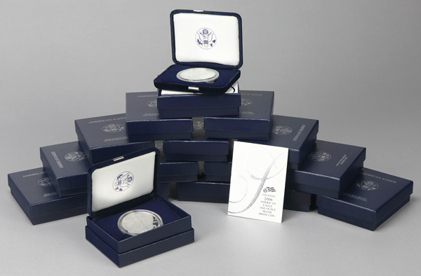 Group of (16) $1 American Eagle Silver Proof Dollars, 2006-2007, group includes: (8) 2006-W (1 w/ damaged packaging) (8)