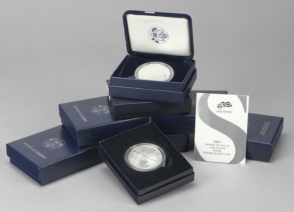 2005-W Proof in OGP (1 damaged packaging) & (2) 2007-W Burnished MS in OGP (8). Shipping charges apply - weight 2.2 lbs. (Image)
