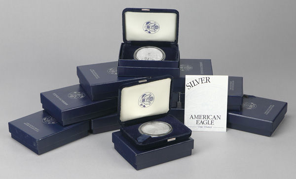 Group of (11) $1 American Eagle: (10) Proof Silver Dollars & (1) UNC, 1988 // 2001, group includes: (1) 1988 Uncirculated