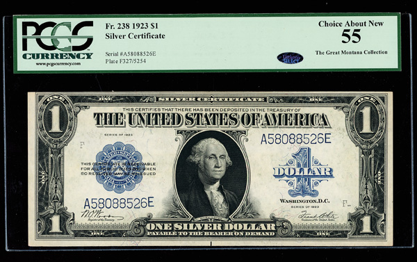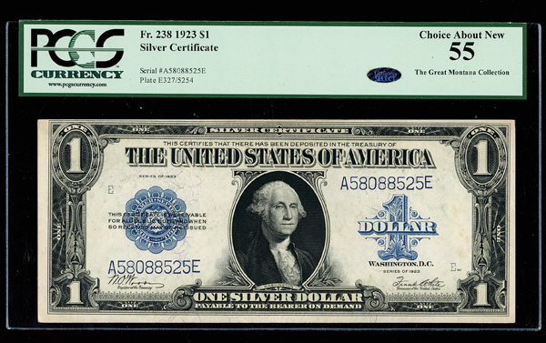 Fr. 238 1923 $1 Silver Certificate PCGS 55 Choice About New (Fr-238), from the Great Montana Collection, PCGS graded About