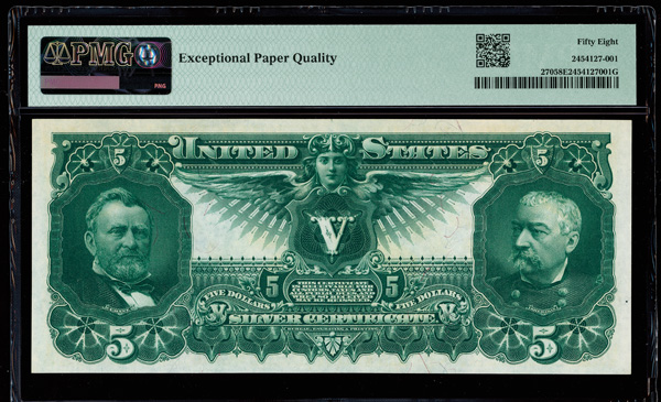 Fr. 270 1896 $5 Silver Certificate PMG 58 Choice About Unc EPQ (Fr-270), PMG graded Choice About Uncirculated 58. (Image) (Image2)