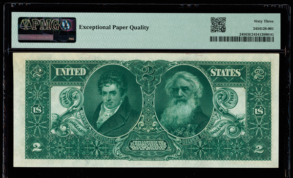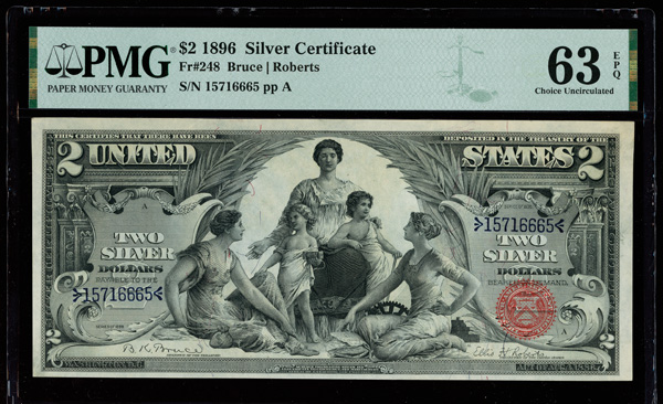 Fr. 248 1896 $2 Silver Certificate PMG 63 Choice Uncirculated EPQ (Fr-248), PMG graded Choice Uncirculated 63. (Image) (Image2)