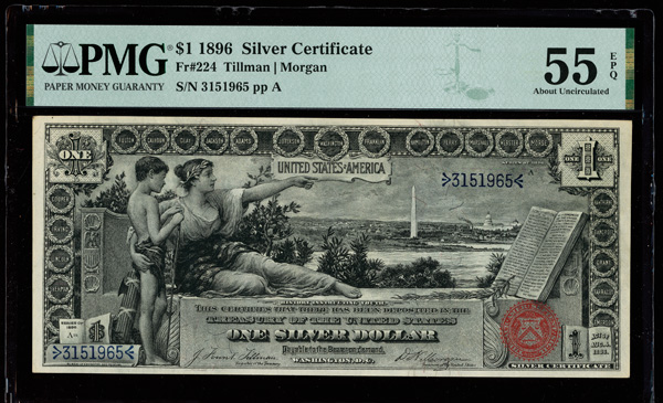 Fr. 224 1896 $1 Silver Certificate PMG 55 About Uncirculated EPQ (Fr-224), PMG graded About Uncirculated 55. (Image) (Image2)