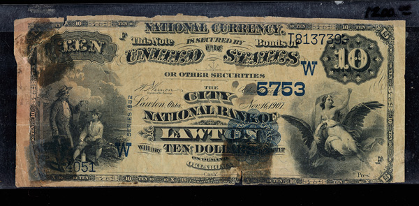 Fr. 578 1882 $10 Value Back "Lawton, Oklahoma" National Bank Note The First NB CH #5753, in VG condition; tape on front and