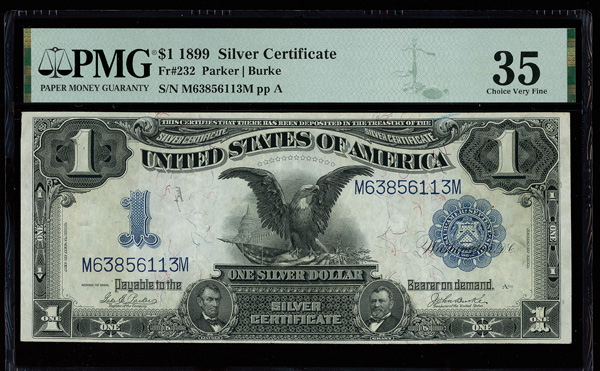 Fr. 232 1899 $1 Silver Certificate PMG 35 Choice Very Fine (Fr-232), PMG graded Choice Very Fine 35. (Image) (Image2)