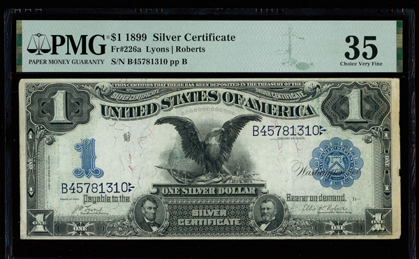 Fr. 226a 1899 $1 Silver Certificate PMG 35 Choice Very Fine (Fr-226a), PMG graded Choice Very Fine 35. (Image) (Image2)