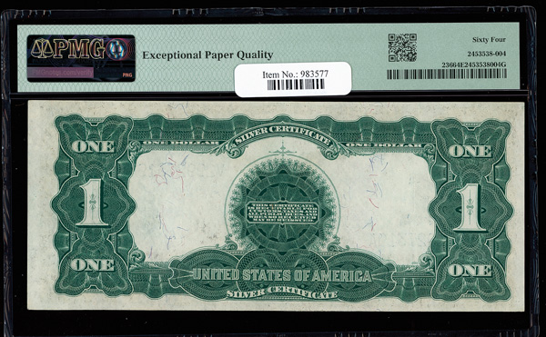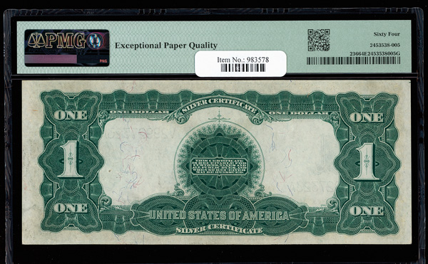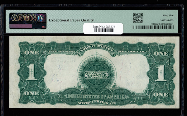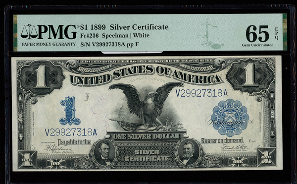 Fr. 236 1899 $1 Silver Certificate PMG 65 Gem Uncirculated EPQ (Fr-236), PMG graded Gem Uncirculated 65. (Image) (Image2)