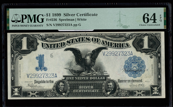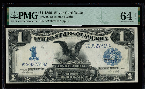 Fr. 236 1899 $1 Silver Certificate PMG 64 Choice Uncirculated EPQ (Fr-236), PMG graded Choice Uncirculated 64. (Image) (Image2)
