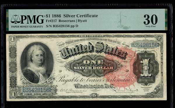 Fr. 217 1886 $1 Silver Certificate PMG 30 Very Fine (Fr-217), PMG graded Very Fine 30. (Image) (Image2)