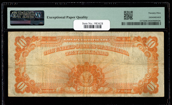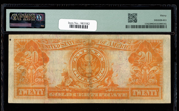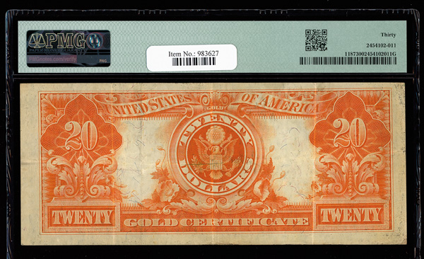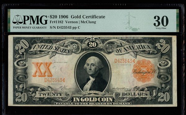 Fr. 1182 1906 $20 Gold Certificate PMG 30 Very Fine (Fr-1182), PMG graded Very Fine 30. (Image) (Image2)