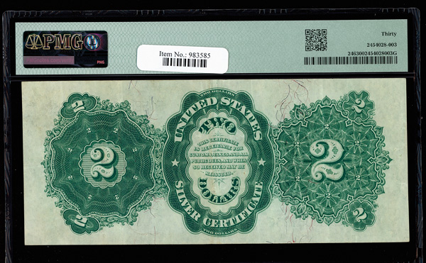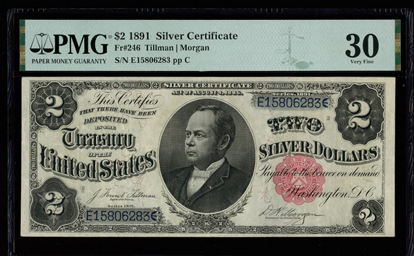 Fr. 246 1891 $2 Silver Certificate PMG 30 Very Fine (Fr-246), PMG graded Very Fine 30. (Image) (Image2)