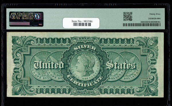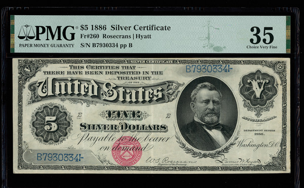 Fr. 260 1886 $5 Silver Certificate PMG 35 Choice Very Fine (Fr-260), PMG graded Choice Very Fine 35. (Image) (Image2)