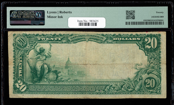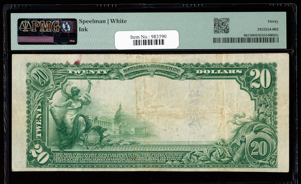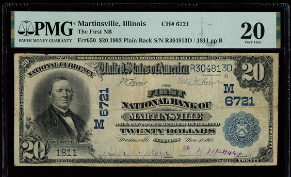 Fr. 650 1902 $20 National Bank Note Martinsville, Illinois CH# 6721 PMG 20 Very Fine (Fr-650), PMG graded Very Fine