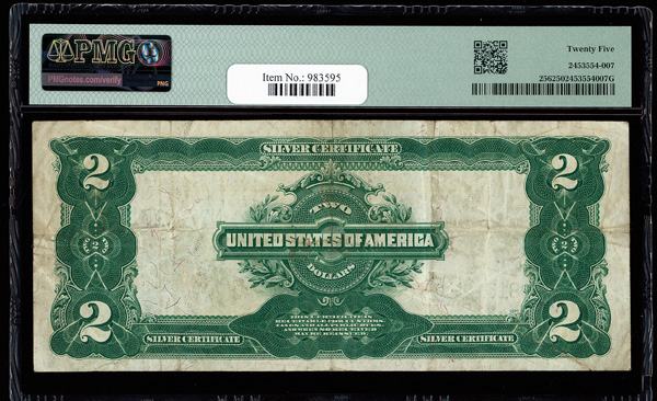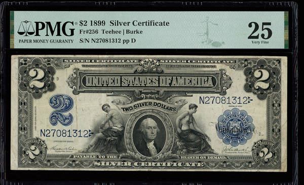 Fr. 256 1899 $2 Silver Certificate PMG 25 Very Fine (Fr-256), PMG graded Very Fine 25. (Image) (Image2)