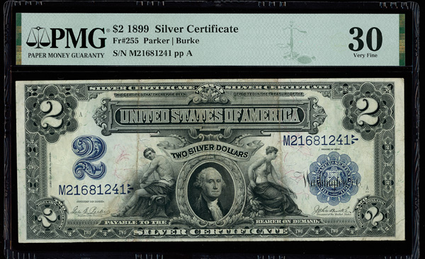 Fr. 255 1899 $2 Silver Certificate PMG 30 Very Fine (Fr-255), PMG graded Very Fine 25. KL-136. (Image) (Image2)