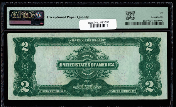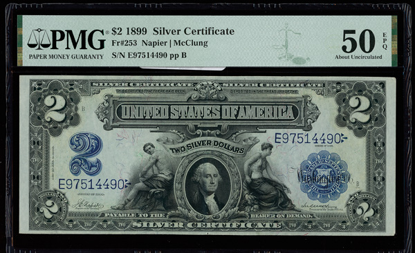 Fr. 253 1899 $2 Silver Certificate PMG 50 About Uncirculated EPQ (Fr-253), PMG graded About Uncirculated 50. (Image) (Image2)