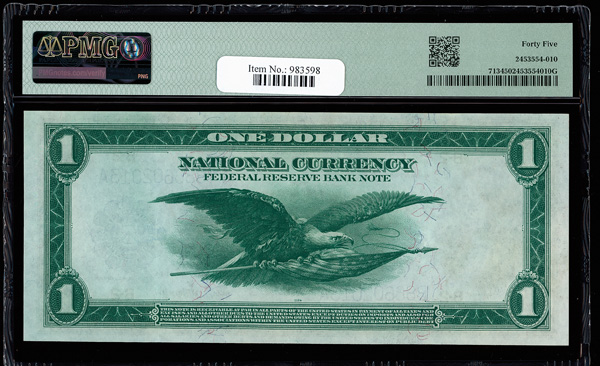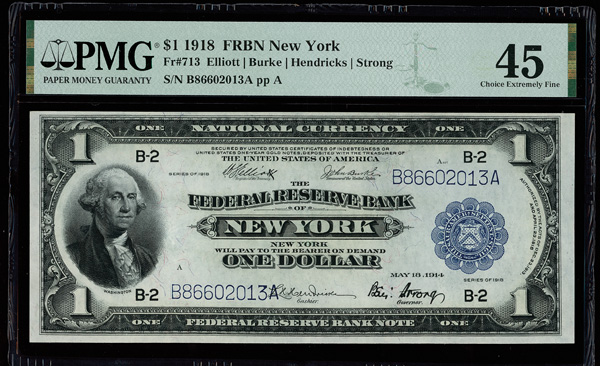 Fr. 713 1918 $1 Federal Reserve Bank Note New York PMG 45 Choice Extremely Fine (Fr-713), PMG graded Choice Extremely Fine
