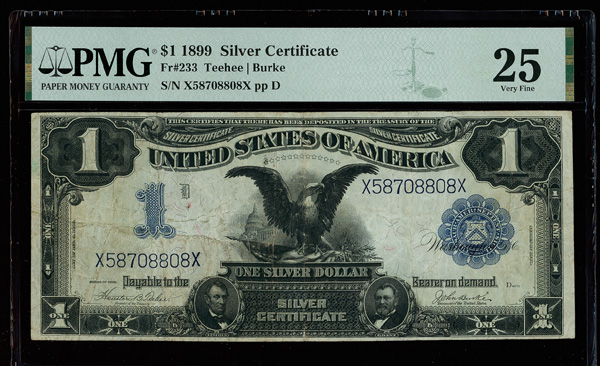 Fr. 233 1899 $1 Silver Certificate PMG 25 Very Fine (Fr-233), PMG graded Very Fine 25. (Image) (Image2)