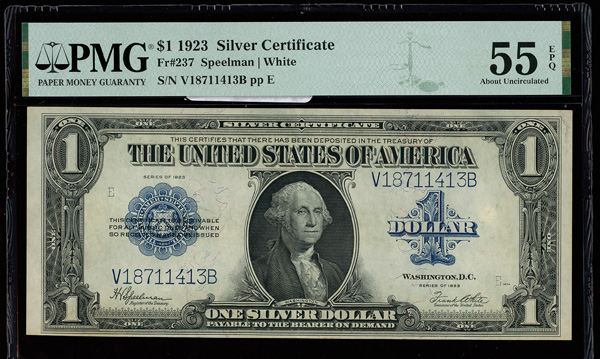 Fr. 237 1923 $1 Silver Certificate PMG 55 About Uncirculated EPQ (Fr-237), PMG graded About Uncirculated 55. (Image) (Image2)