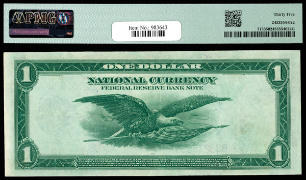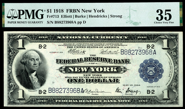 Fr. 713 1918 $1 Federal Reserve Bank Note New York PMG 35 Choice Very Fine (Fr-713), PMG graded Choice Very Fine 35. (Image) (Image2)