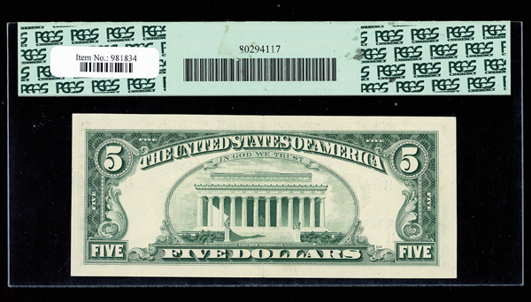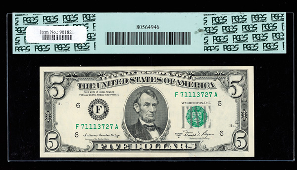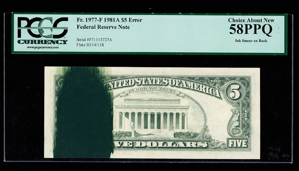 Fr. 1977-F 1981A $5 Federal Reserve Note Ink Smear Error PCGS 58 Choice About New PPQ (Fr-1977-F), PCGS graded Choice About