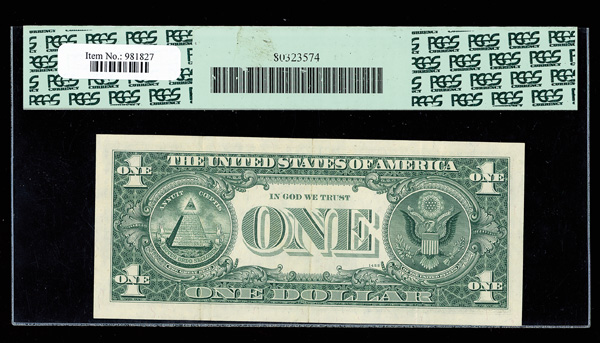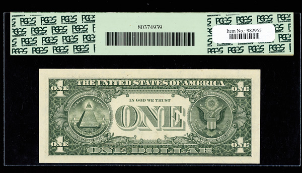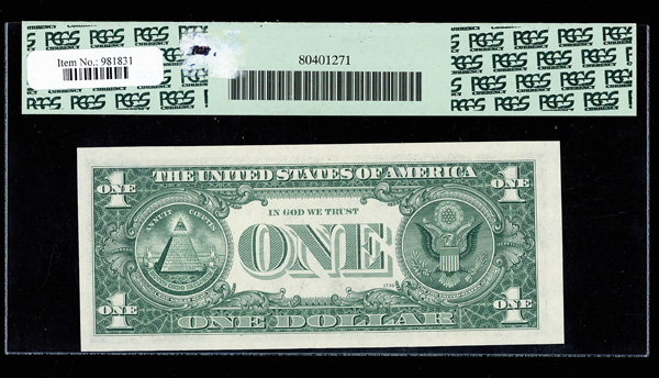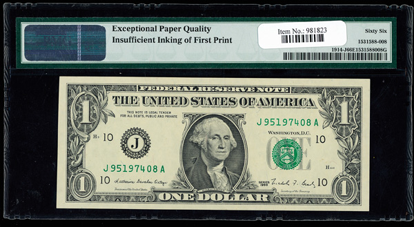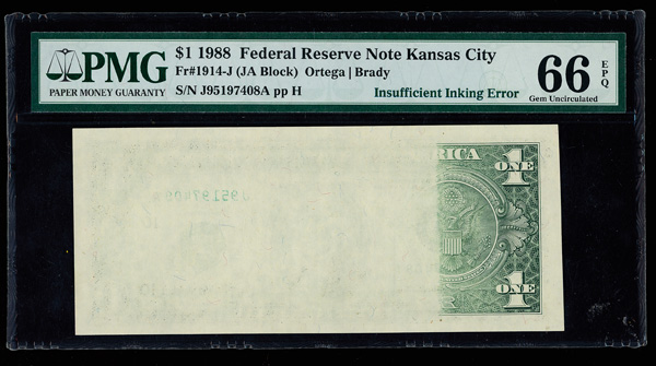 Fr. 1914-J 1988 $1 Federal Reserve Note Insufficient Inking Error PMG 66 Gem Uncirculated (Fr-1914-J), PMG graded Gem